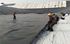 人工湖城市河道治理膨潤土防水毯施工鋪設(shè)現(xiàn)場